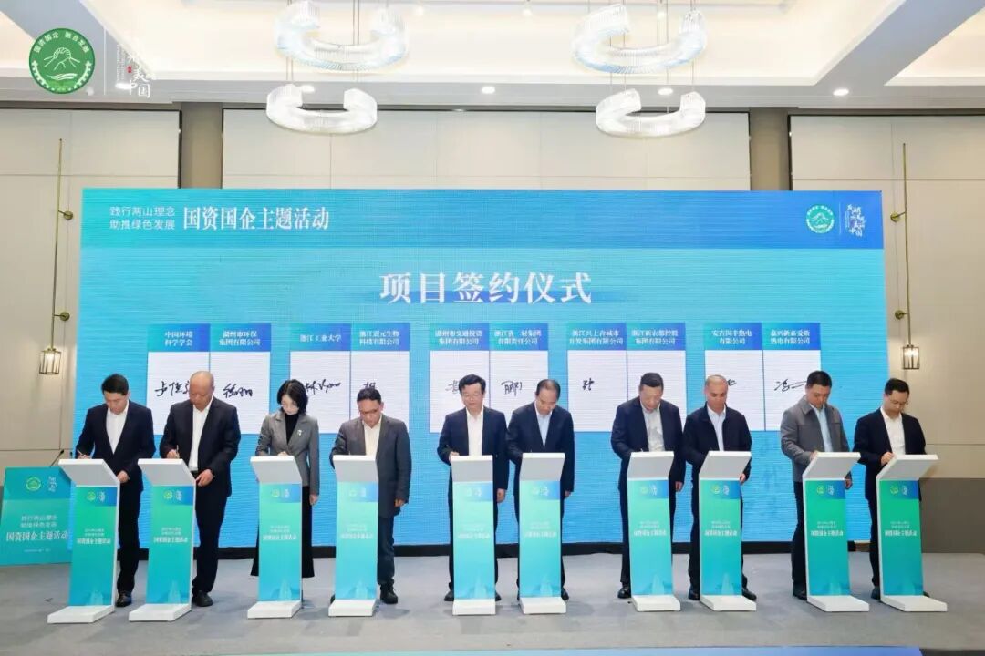 与会有关单位围绕环保技术落地、生物制药、船舶智能化、生物质发电、污水处理、大气污染防治、固废综合治理、废旧钢铁回收等领域业务合作,完成了10个项目的现场签约,将国资国企践行“两山”理念、推动绿色发展的落实到行动上。
