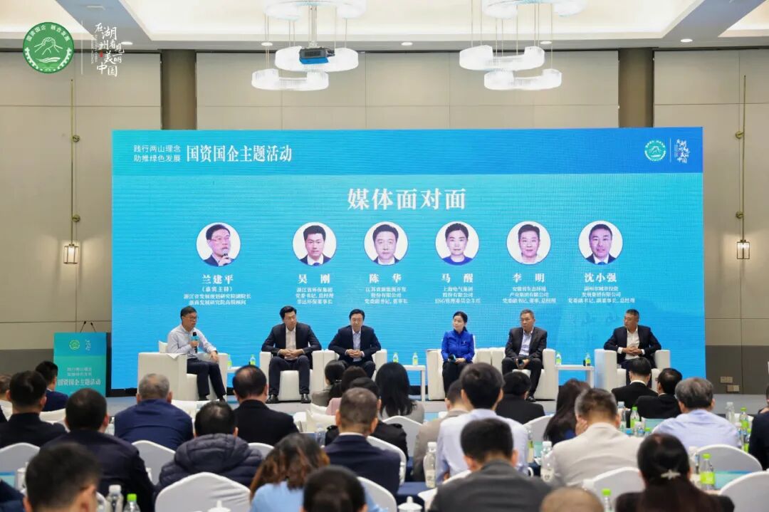 媒体“面对面”环节,在浙江省发展规划研究院副院长、浙商发展研究院高级顾问兰建平主持下,浙江省环保集团党委书记、副董事长、总经理,浙江菲达环保科技股份有限公司董事长吴刚,上海电气集团股份公司ESG管理委员会总经理马醒,江苏省新能源开发股份公司董事长、党委副书记陈华,安徽省生态环境产业集团党委副书记、董事、总经理李明,湖州市城投集团党委副书记、副董事长、总经理沈小强,向与会嘉宾及新华网、人民网、中新网、潮新闻、《浙商》等媒体记者介绍典型经验、描画发展蓝图。